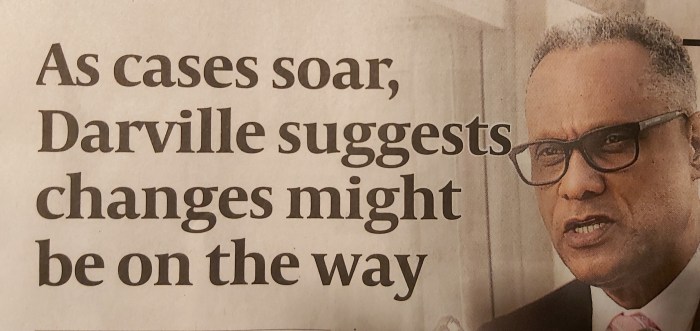 Excerpt from this article; While 942 new COVID cases were confirmed in The Bahamas between Thursday and Saturday, Minister of Health, Dr. Michael Darville said there has been positive signs that the fourth wave is peaking and additional measures may not be needed.