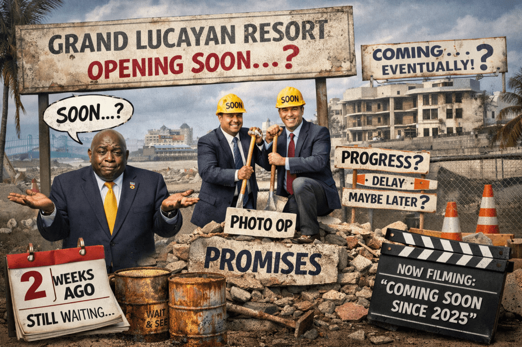 At this point, the Grand Lucayan saga feels less like a development project and more like a long-running series where every season finale promises answers… and every new season starts with, “Previously on Nothing Happened…”