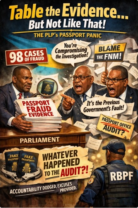 We’re told that 98 cases of suspected passport fraud have been referred to the Royal Bahamas Police Force. Not two. Not five. Ninety-eight. That is not a rounding error — that is a flashing red alarm bell with a megaphone.