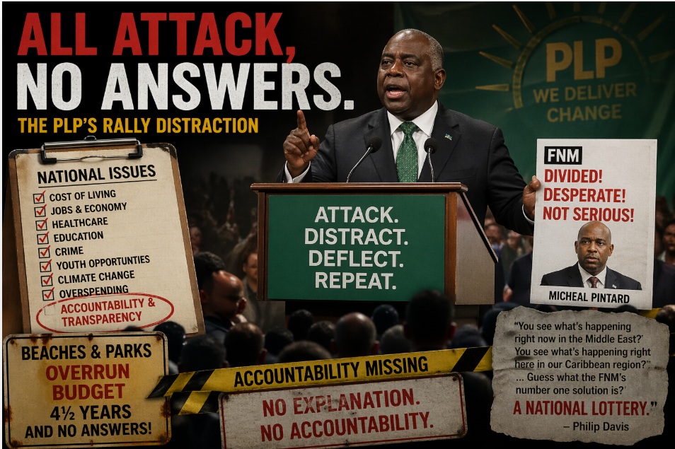 Now, what stands out most from that rally is not simply that the Progressive Liberal Party (PLP) chose to criticize the opposition—that’s expected in politics—but that it did so while sidestepping the very issues it is constitutionally responsible for addressing. When a governing party devotes significant time to attacking opponents instead of accounting for its own record, it invites scrutiny about what it is avoiding.